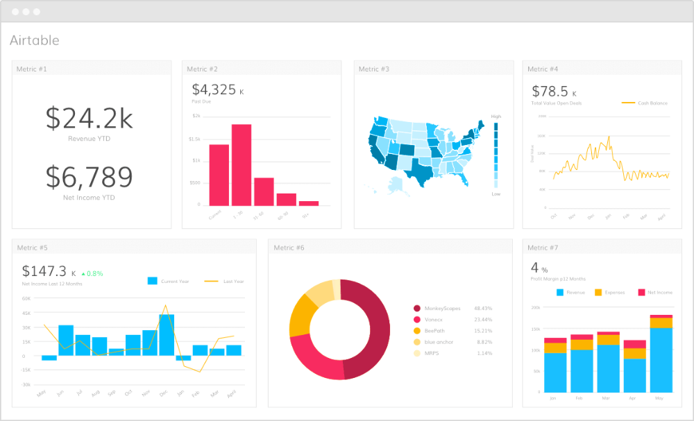 Перед созданием интерфейса необходимо подготовить структуру данных в Airtable. Данные, отображаемые на красивых панелях, на самом деле извлекаются из таблиц в бэкэнде.